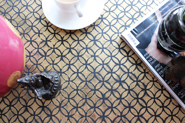 Do udekorowania blatu sięgnęłam po złotą farbę.