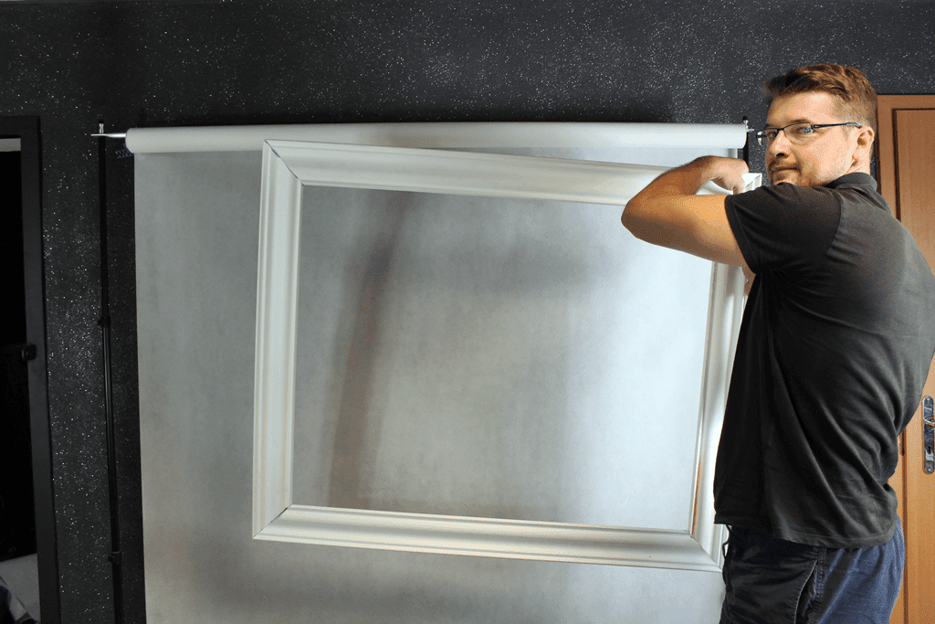 Styropianowe listwy z listy zakupowej, posłużyły do wykonania „ramy” na naszą fotobudkę. Wystarczy przyciąć je pod kątek 90 stopni, skleić i następnie pomalować na wybrany kolor.