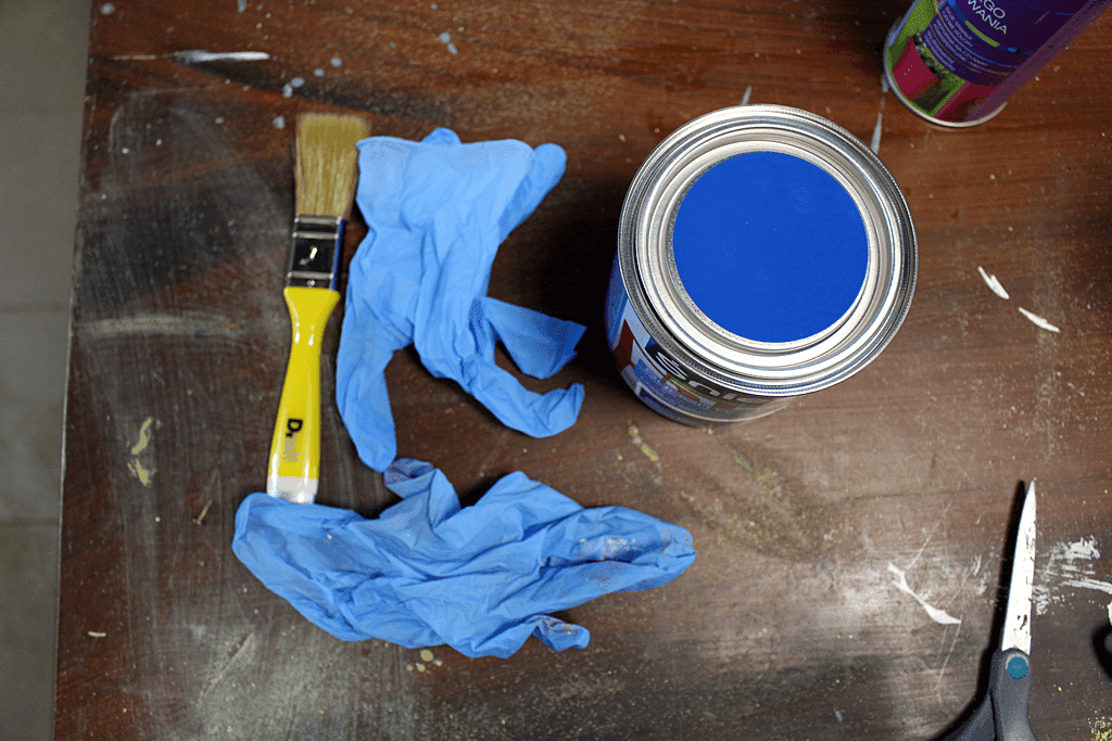 Do wykonania fotobudki wystarczyła jedna warstwa emalii akrylowej Supermal Śnieżka, aby uzyskać tak intensywny kolor, A430 niebieski, (wow!), a na farbę położyliśmy
