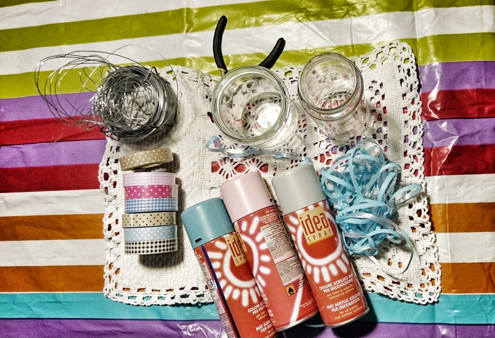 Mój pomysł na wykonanie lampionów ze słoków, to malowanie i klejenie, a także spray’owanie i oczywiście kolorowe taśmy klejące.