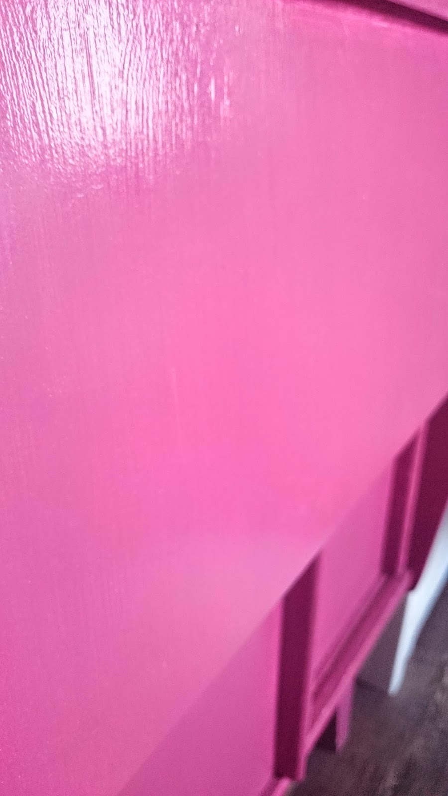 Jakie są ewidentne wady użycia wałka malarskiego typu gąbka? Pęcherzyki powietrza! Jeśli myślicie, że wsadzicie wałek do kuwety malarskiej i dwa razy przerolujecie, następnie rachu ciachu i po strachu to się niemiło zaskoczycie;P Pamiętajcie dobrze wymieszać farbę i poczekać, jeśli robiliście to zbyt szybko, aby pęcherzyki się rozbiły. Po przelaniu do kuwety farba powinna być jednolita, gęsta. Nie spieniona! Po umoczeniu wałka w farbie i zrolowaniu na kuwecie trzeba malować powoli i ostrożnie. Co do zasady, po pierwszym „przejechaniu” powierzchni bąbelki i tak się zrobią. Jeśli powoli przesuniemy ponownie wałkiem w tym samym miejscu, pęcherzyki powinny pęknąć. Po wyschnięciu, druga warstwa zdecydowania powinna pokryć wszelkie mankamenty. Ważne! Powierzchnia musi być przeszlifowana i gładka (odtłuszczona). Co jeśli nie jest? Liczcie na ślizganie się wałka po politurze, czy grubej warstwie lakieru. Odradzam takie malowanie, chociaż jest możliwe. Wówczas potrzeba przynajmniej trzech warstw i naprawdę ostrożnego, wolnego malowania. Malowałam tak kiedyś drzwi z farbą olejną. Nie było czasu na ich gruntowne oczyszczenie. Szybka przecierka i wio!
