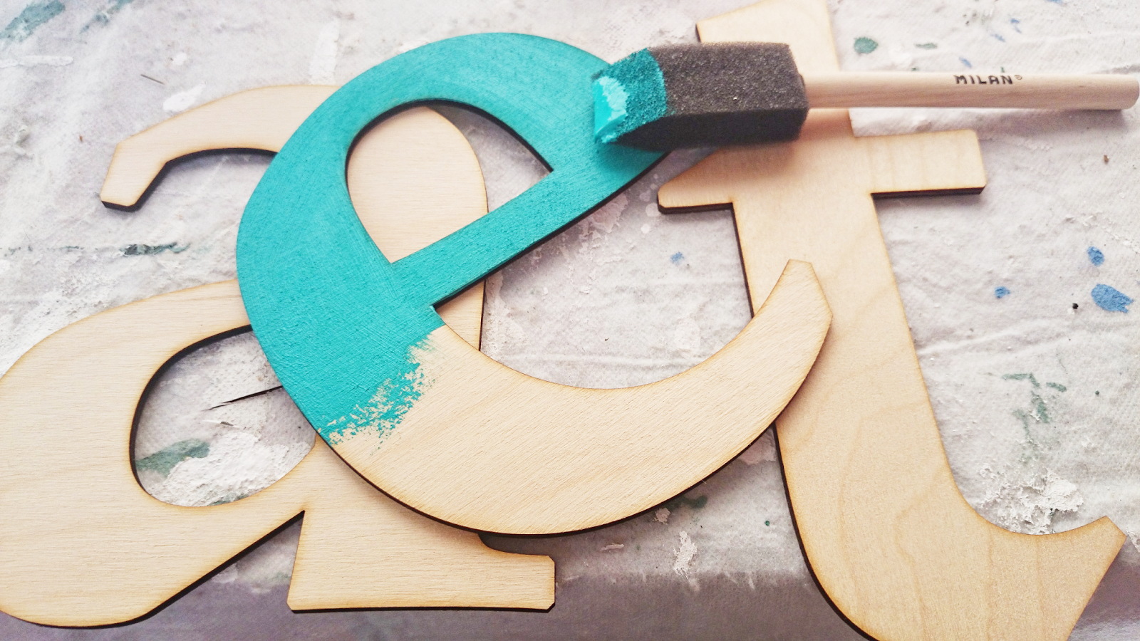 Literki. Ja akurat miałam drewniane. Śmiało możecie je wyciąć z innej tkaniny, tektury, papieru. Moje pomalowałam na turkusowo: