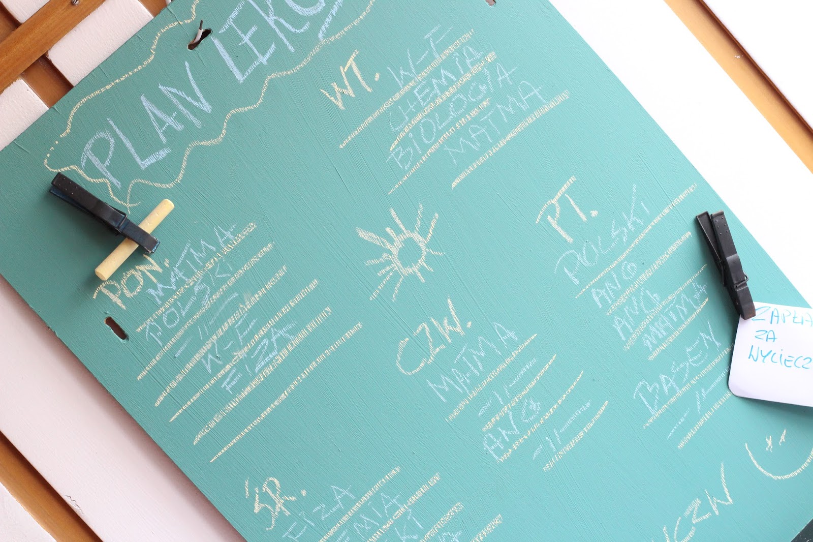 Spinaczami można złapać kredę lub jakąś kartkę z przypominajką: