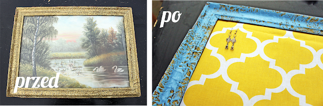 I na koniec raz jeszcze wieszak na kolczyki w ulubionym zestawieniu przed i po. Jak Wam się podoba? I przede wszystkim jakie są Wasze patenty na przechowywanie biżuterii?