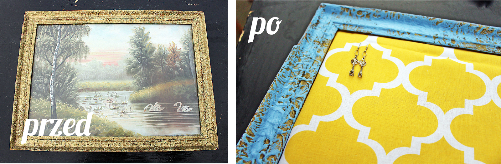 I na koniec raz jeszcze wieszak na kolczyki w ulubionym zestawieniu przed i po. Jak Wam się podoba? I przede wszystkim jakie są Wasze patenty na przechowywanie biżuterii?