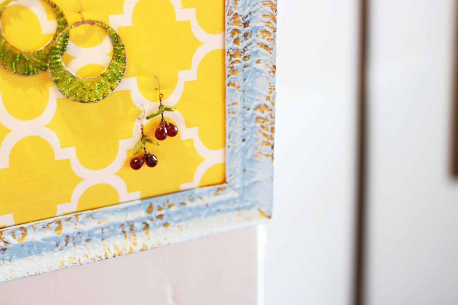 Zacznijmy więc od projektu „zrób to sam”. Wykorzystałam starą ramę, farbę, kawałek gąbki, tkaniny, pistolet z klejem na gorąco. I to naprawdę tyle.