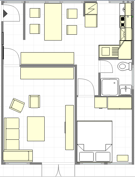Balkon dla tej kuchni jest jednocześnie zaletą i przekleństwem. Wyjście nań, tzn. drzwi balkonowe, skutecznie odebrało kilka nasuwających się rozwiązań aranżacyjnych. Jak widzieliście na pierwszym zdjęciu, cała kuchnia była oddzielona od jadalni meblościanką z drzwiami. Pierwszym krokiem, który miałam w głowie to usunięcie tego elementu i stworzenie wyspy kuchennej.