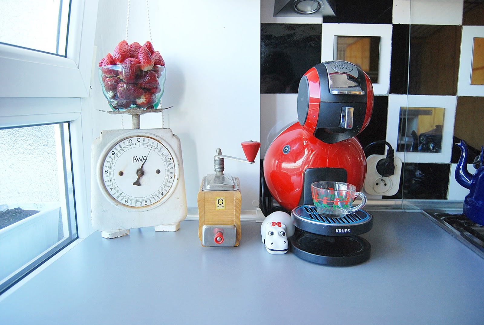 Nie jestem jakąś wybitną kuchareczką. Nawet wprost napiszę, nie przepadam za gotowaniem. Wolę młotek, meble, farby. Co prawda, nie trzymam butów w piekarniku niczym Carrie Bradshaw, ale kuchnia to dla mnie dodatek w mieszkaniu. Jeśli zaś chodzi o dodatki… Ekspres do kawy to sprawa priorytetowa. Poza tym wyszperane przeze mnie starocie 🙂