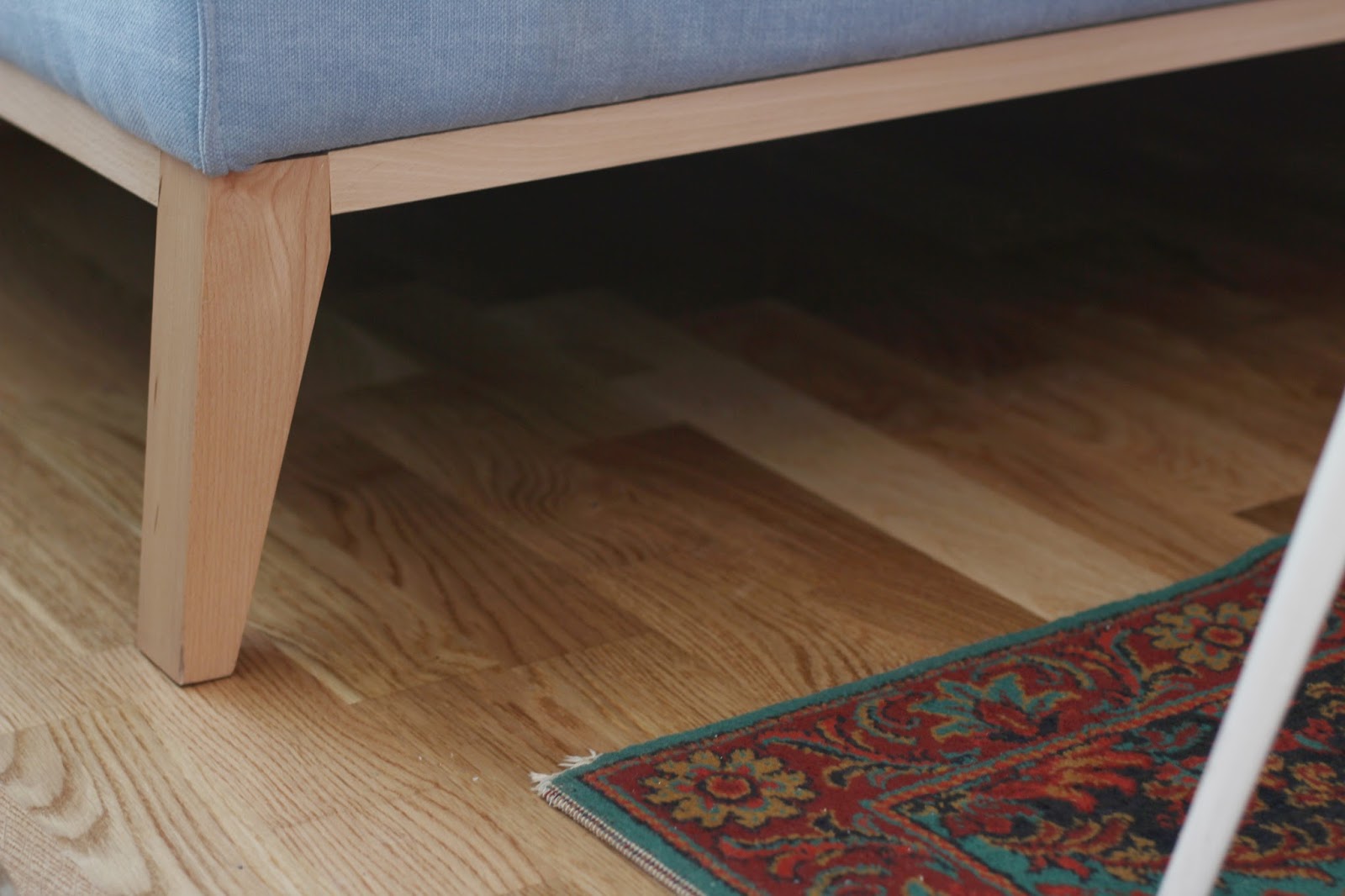 Potrzebny był więc dywan do powstającej sypialni oraz saloniku. W sypialni w szczególności pod łóżko. Bo to najcięższy mebel w pokoju i faktycznie ma prawo odgnieść się na podłodze. Zaś w saloniku pod kanapę i stół, które swoje gabaryty również mają i trzeba w tym miejscu podłogę odciążyć.