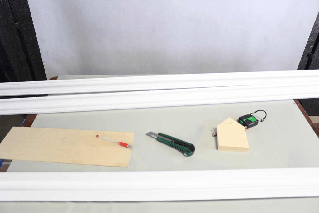 Styropianowe listwy z listy zakupowej, posłużyły do wykonania „ramy” na naszą fotobudkę. Wystarczy przyciąć je pod kątek 90 stopni, skleić i następnie pomalować na wybrany kolor.