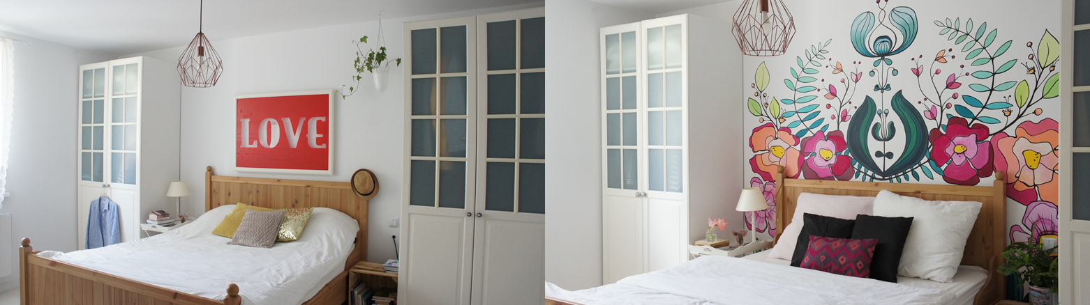 Ona też kocha kolor, zobaczcie jej cudny mural .. w sypialni: