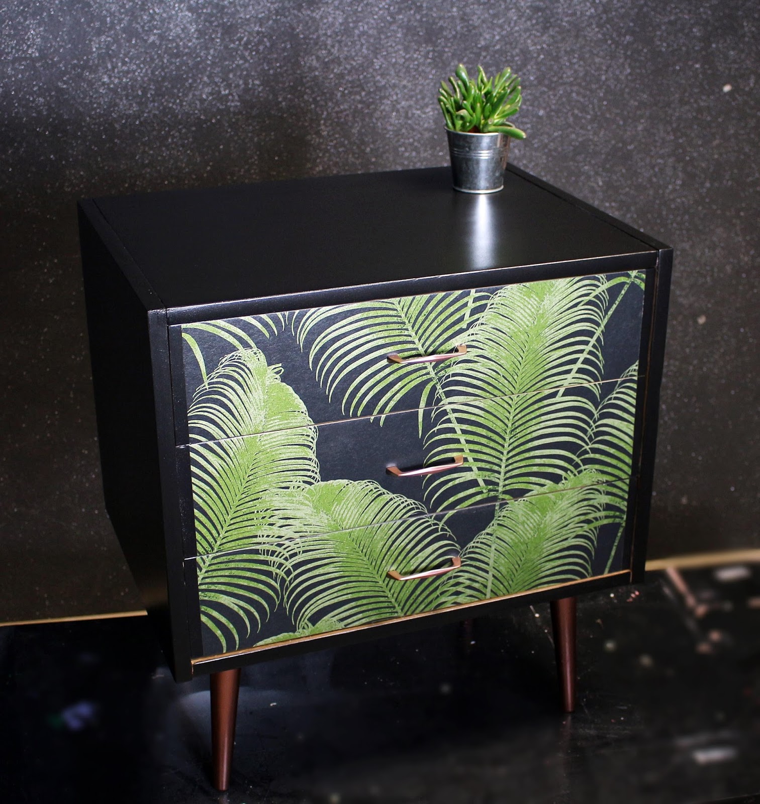 I gotowe! Niech się stanie noc migocząca gwiazdami. Bo kto kupi tę szafkę, z pewnością zapragnie posiadać i brokatowej czarnej ściany! Pasuje, jak ulał, nieprawdaż ?