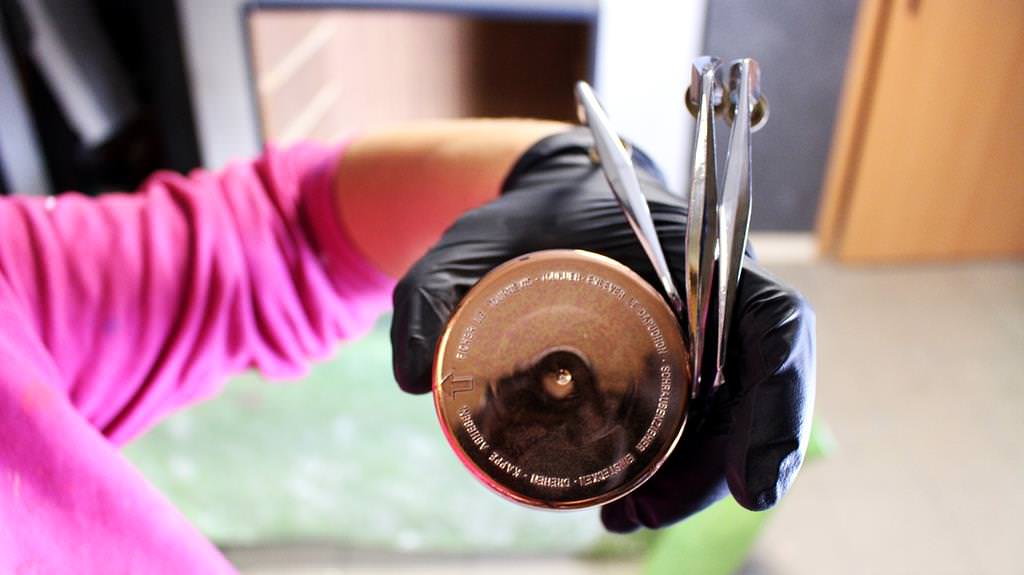 No czarny, tak od razu mi się nasunęło. Ale spojrzałam na te migoczące liście paproci i myślę sobie-niech się stanie blichtr. Niech zapachnie glamourem, czy czymś w tym stylu. I miałam chwycić po złoto, ale źle by wyglądało z tą zielenią, tak wprost. Srebrny spray odpadał w przedbiegach, bo taki kolor uchwyty już miały i nie „leżało” mi to kompletnie. Pomyślałam- miedź. Wybrałam spray DUPLI Color. Dostępny w marketach.