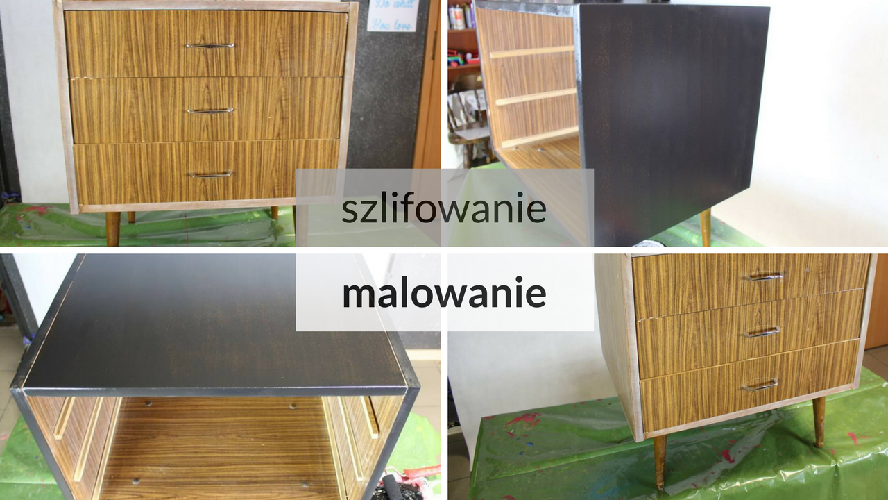 Pierwszą rzeczą, którą zrobiłam, było zmatowienie mebla. Dokładnie korpusu i frontów szuflad. Po raz drugi (pierwszą komodę pokażę Wam wkrótce), pomalowałam mebel na czarno.. I jak to mawiała moja ciocia „Podoba mnie się” 😀
