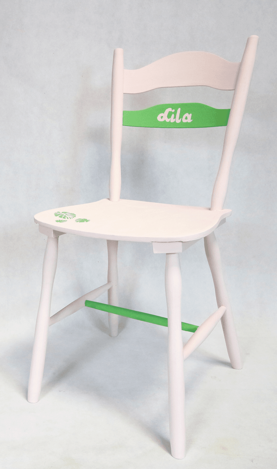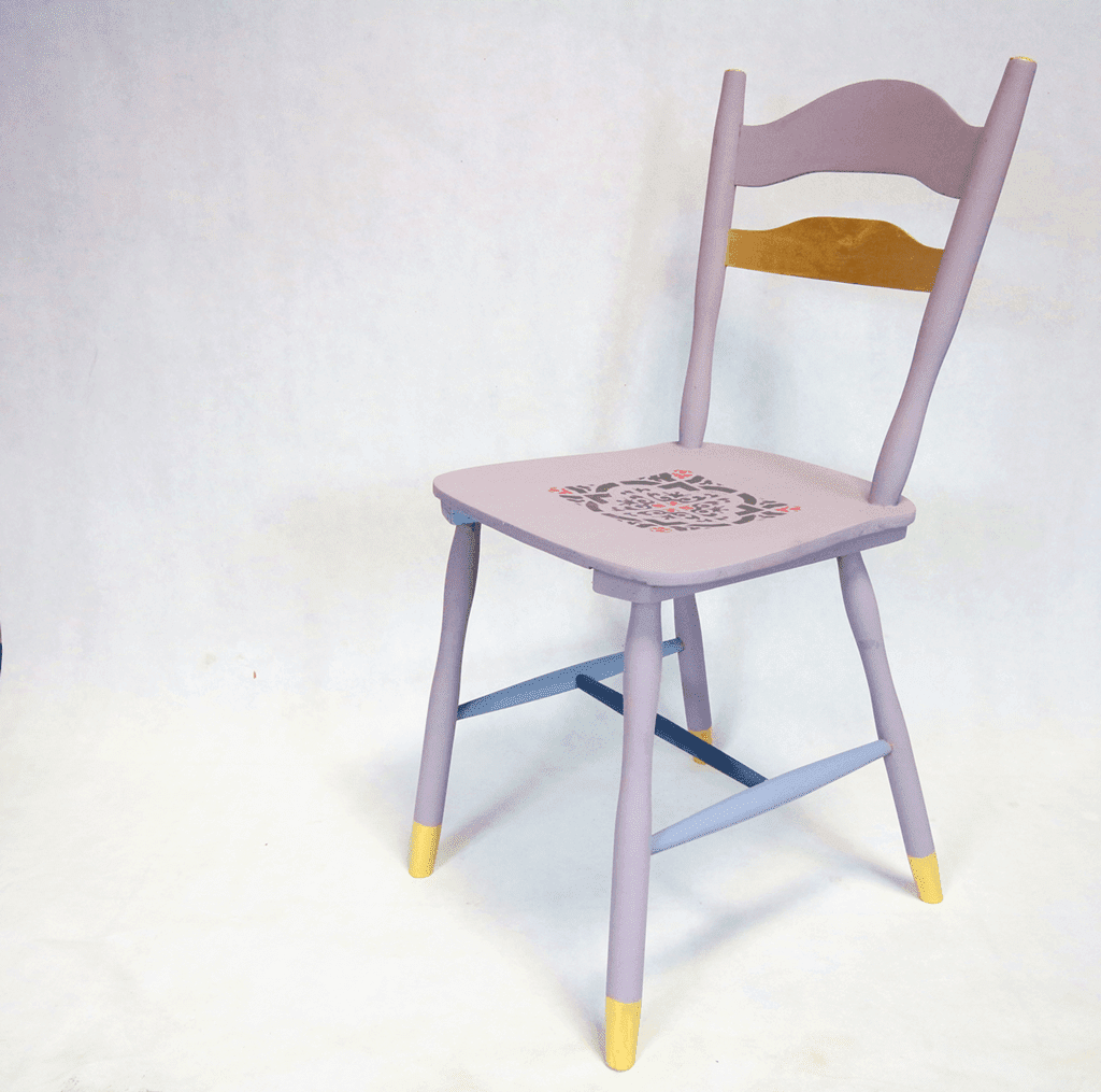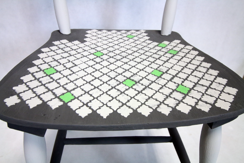 Do stylizacji krzeseł używałyśmy taśm oraz szablonów dekoracyjnych (wielokrotnego użytku) od Hagart.