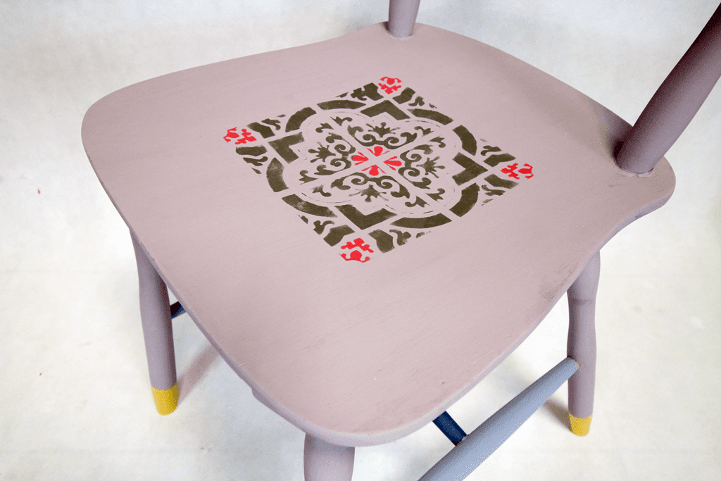 Dziewczyny malowały w dwóch kolorach, trzech, a jedna z Uczestniczek zaszalała kompletnie i właściwie już nie zdążyłam policzyć na ile kolorów się zdecydowała. Po skończonym malowaniu krzeseł przyszła pora na zdobienia i m.in. szablony: