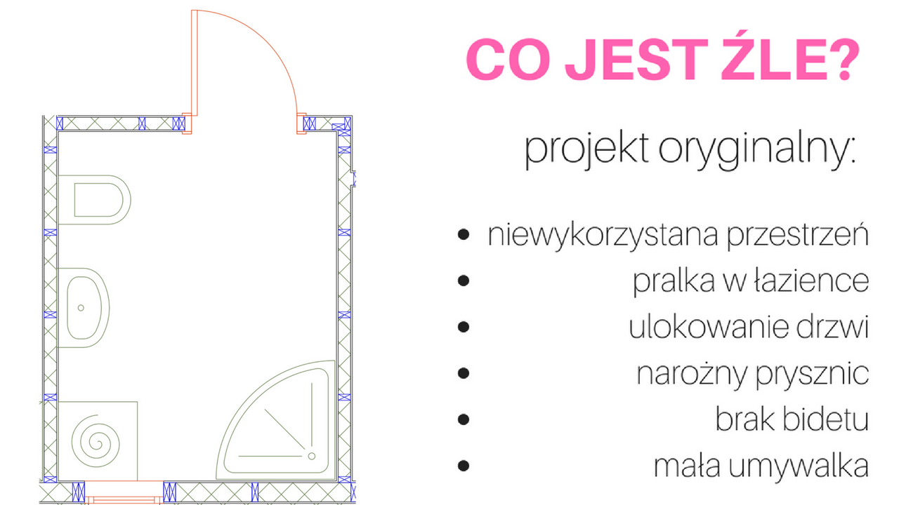 Z uwagi na mój stan zdrowia (przeszłam liczne operacje), wanna nie jest wymarzonym rozwiązaniem do łazienki. Mariusz to wysoki mężczyzny i wanna wraz z wymarzonym prysznicem, nie zmieści się w tym pomieszczeniu.