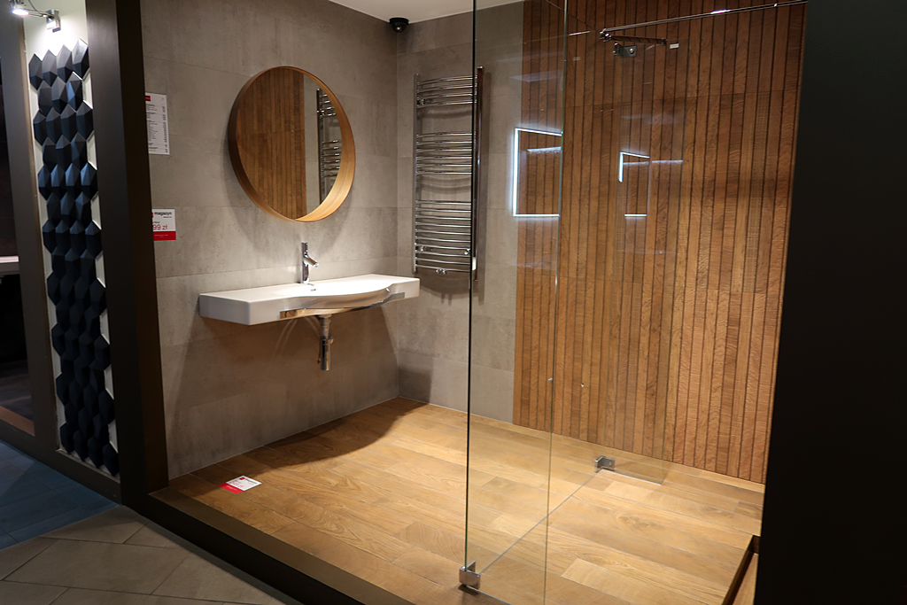 Najtrudniejszą częścią było optymalne wykorzystanie przestrzeni w kabinie prysznicowej. Ponieważ nie można umiejscowić baterii na ścianie jego krótszego boku (to ściana elewacyjna i ewentualne przecieki, czy naprawy wiązałaby się z potężnymi kosztami), należało znaleźć pół-środek. I tym półśrodkiem jest bateria oraz dodatkowo deszczownica.