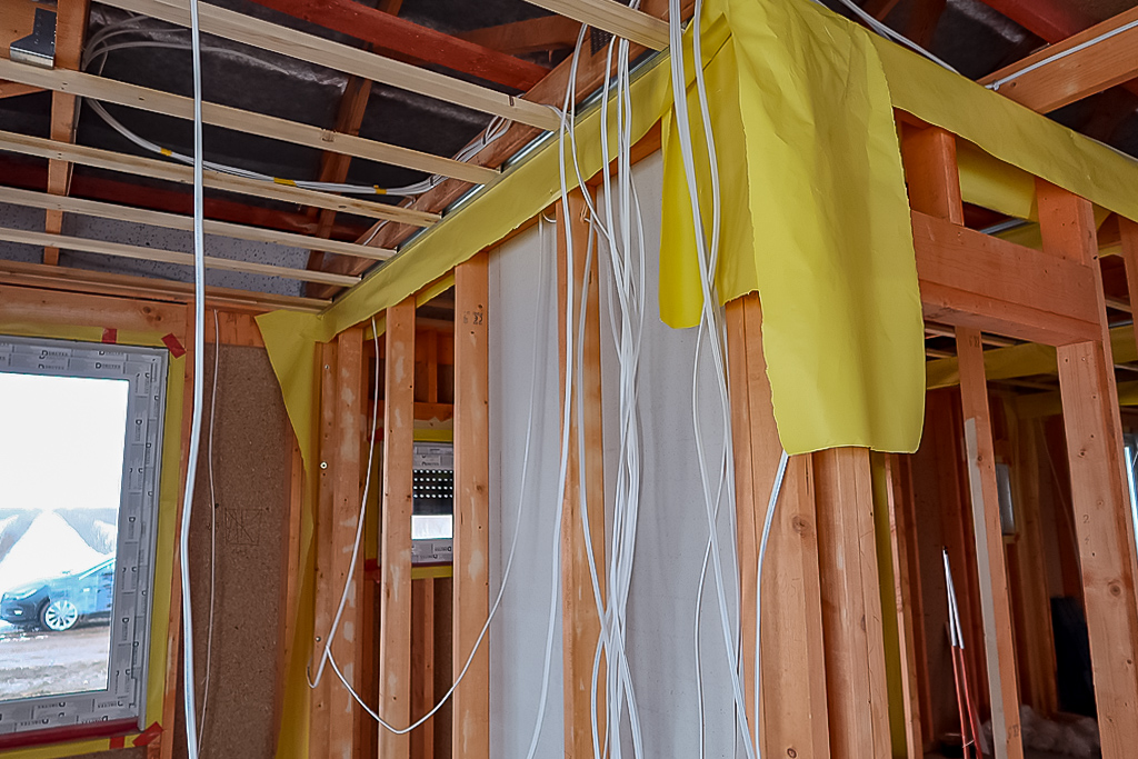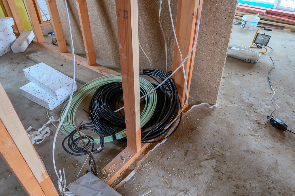 Jak widzicie na zdjęciach we wpisie, elektryka jest rozprowadzana w szkielecie budynku. Przed uzupełnieniem go wełną i opłytowaniem.