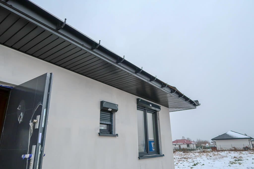 Podbitka jest wykonana z materiału PCV. Została zamontowana do łat montażowych na wkręty.