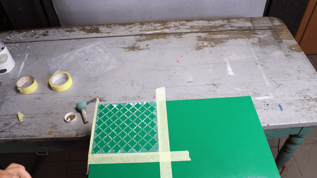 Szablon położyłam wyłącznie na blacie szafki. Z początku. Później naszła mnie wena i w efekcie finalnym, który zobaczycie za chwilę poszalałam mocniej.
